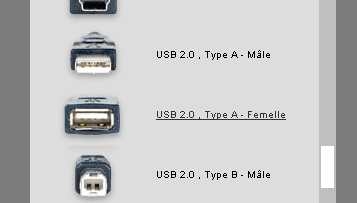 Les visuels de chaque connecteurs sont représentés par des photos fidèles et ne laissent ainsi pas de place à l'erreur..Cas pratique : Comment relier mon disque dur externe à mon pc ?- Je connais mon connecteur USB et je l'identifie dans le configurateur de câbles :Allez dans le configurateur de câbles se trouvant sur la home page du site.Identifiez le connecteur de votre disque dur servant à le relier à un PC.Ici vous connaissez votre connecteur, vous cliquez donc sur "Je connais ma connectique".Choisissez la famille de connecteurs qui vous convient.Puis choisissez votre deuxième connecteur (le connecteur PC).